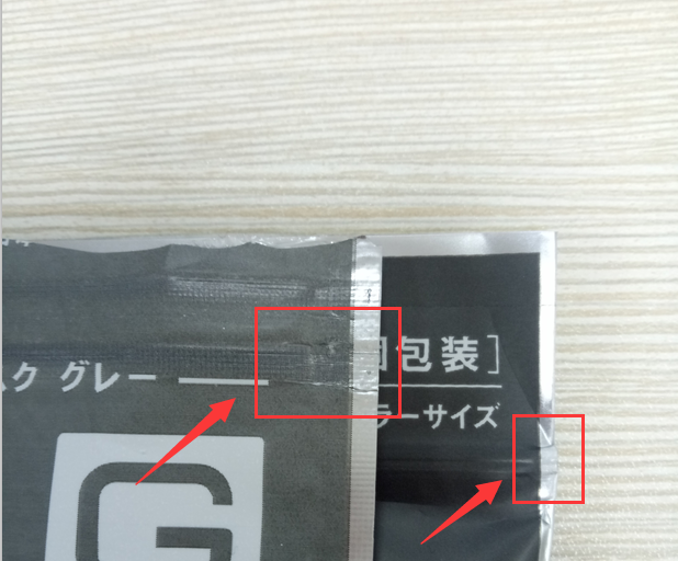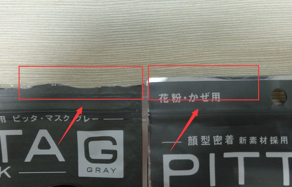 正品:所有產品內包裝中間的一道熱封口和口罩耳繩折疊方向都是順向的,工字狀的熱封手感是瓦楞狀的。